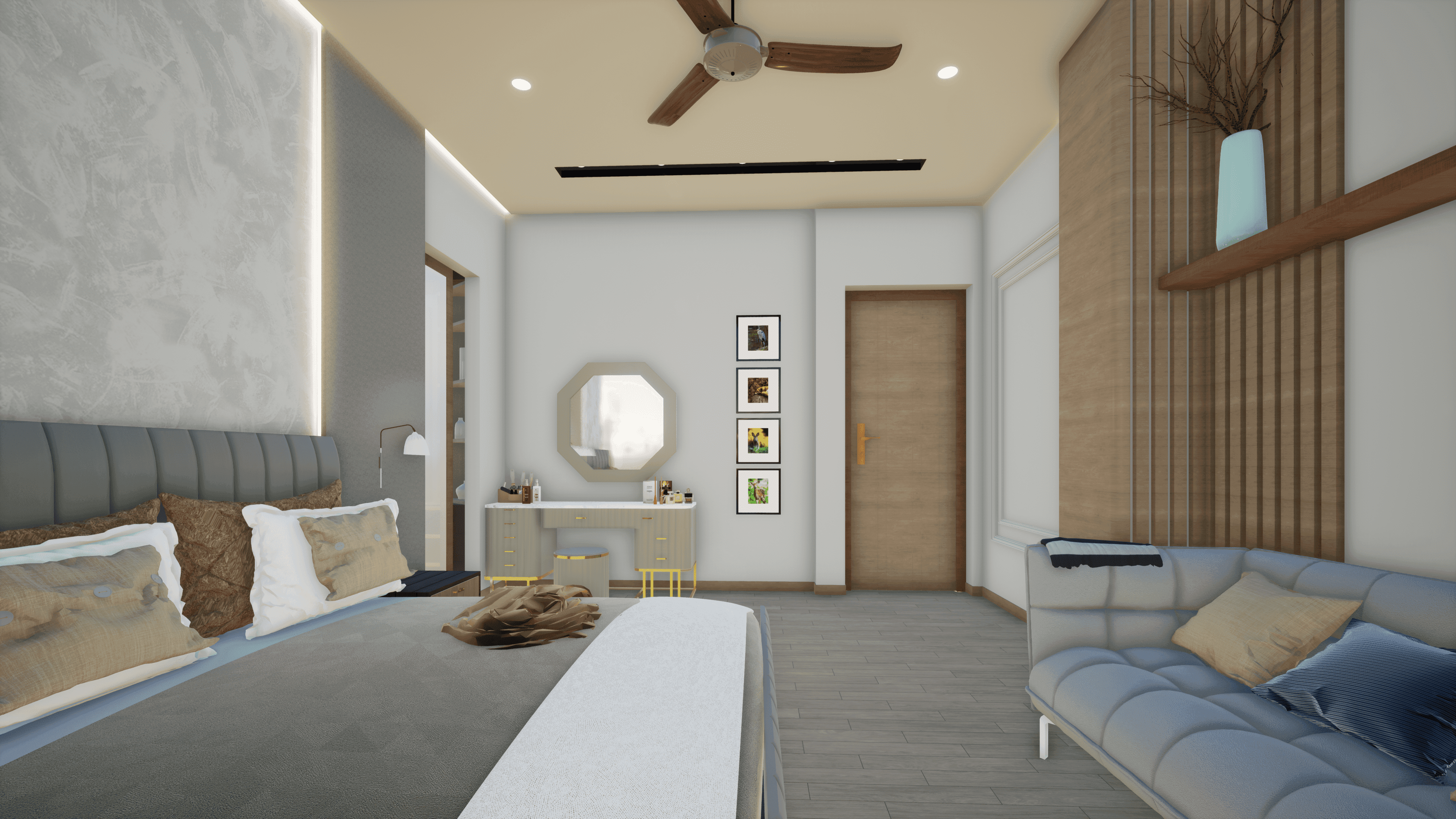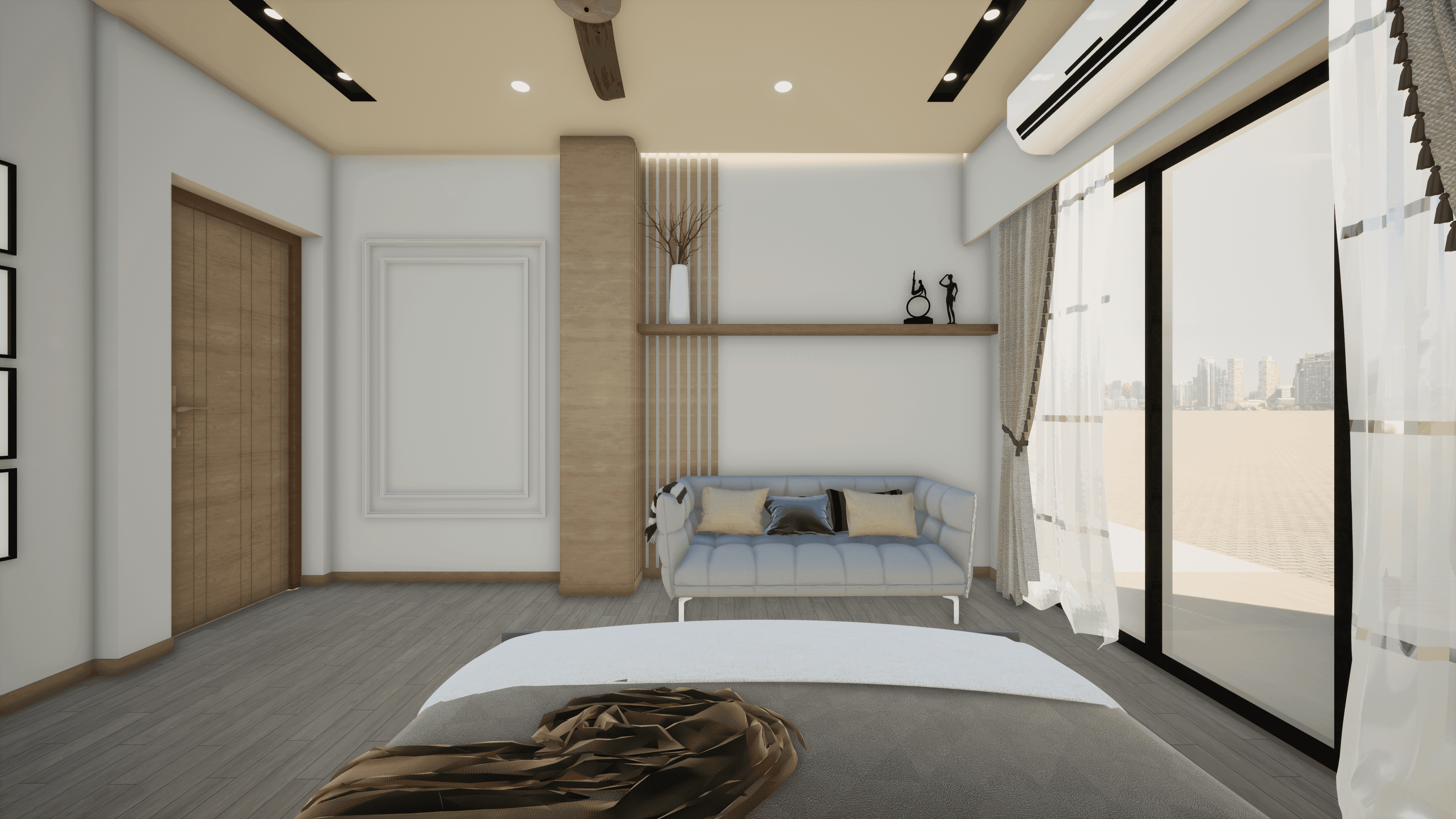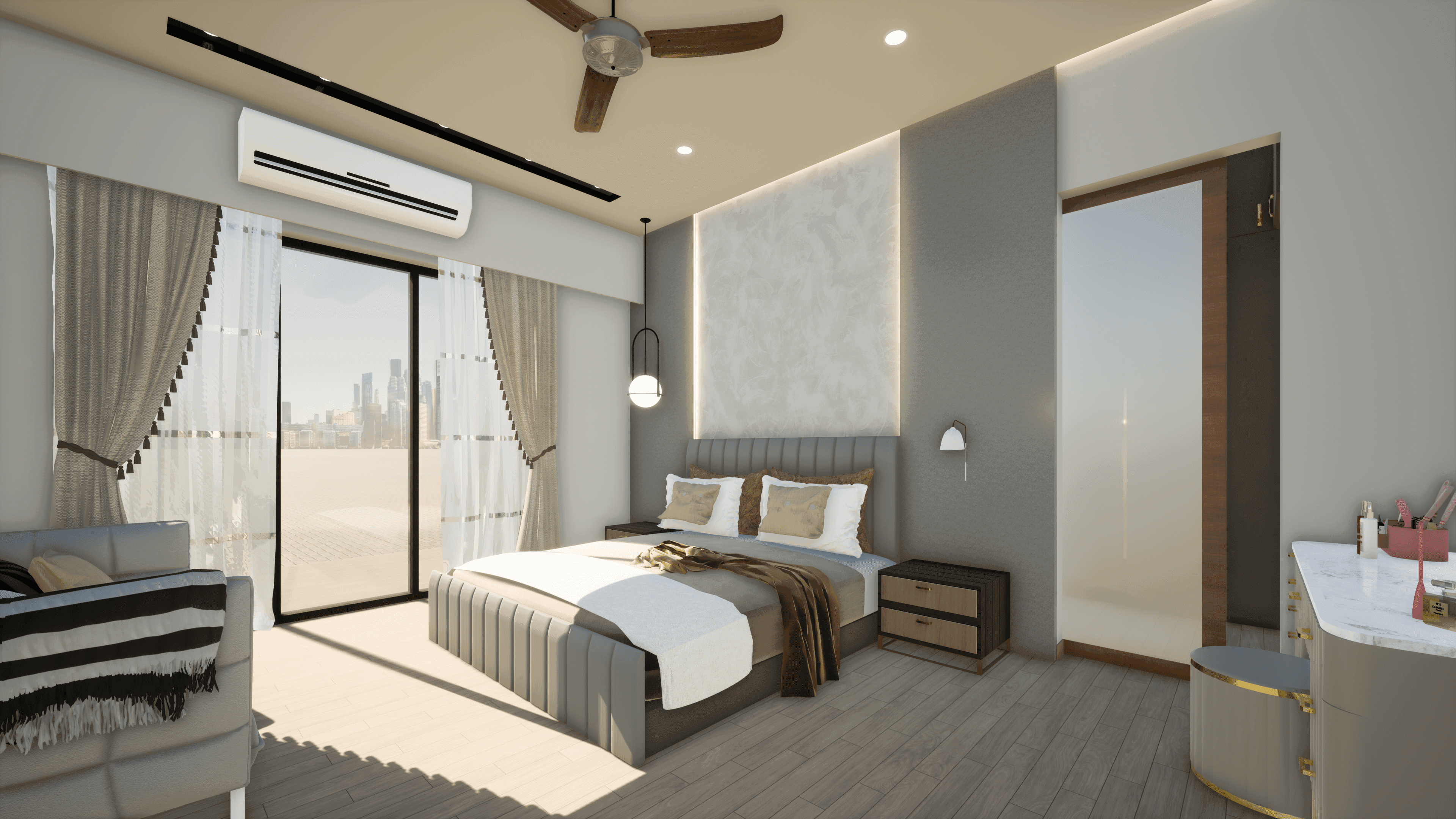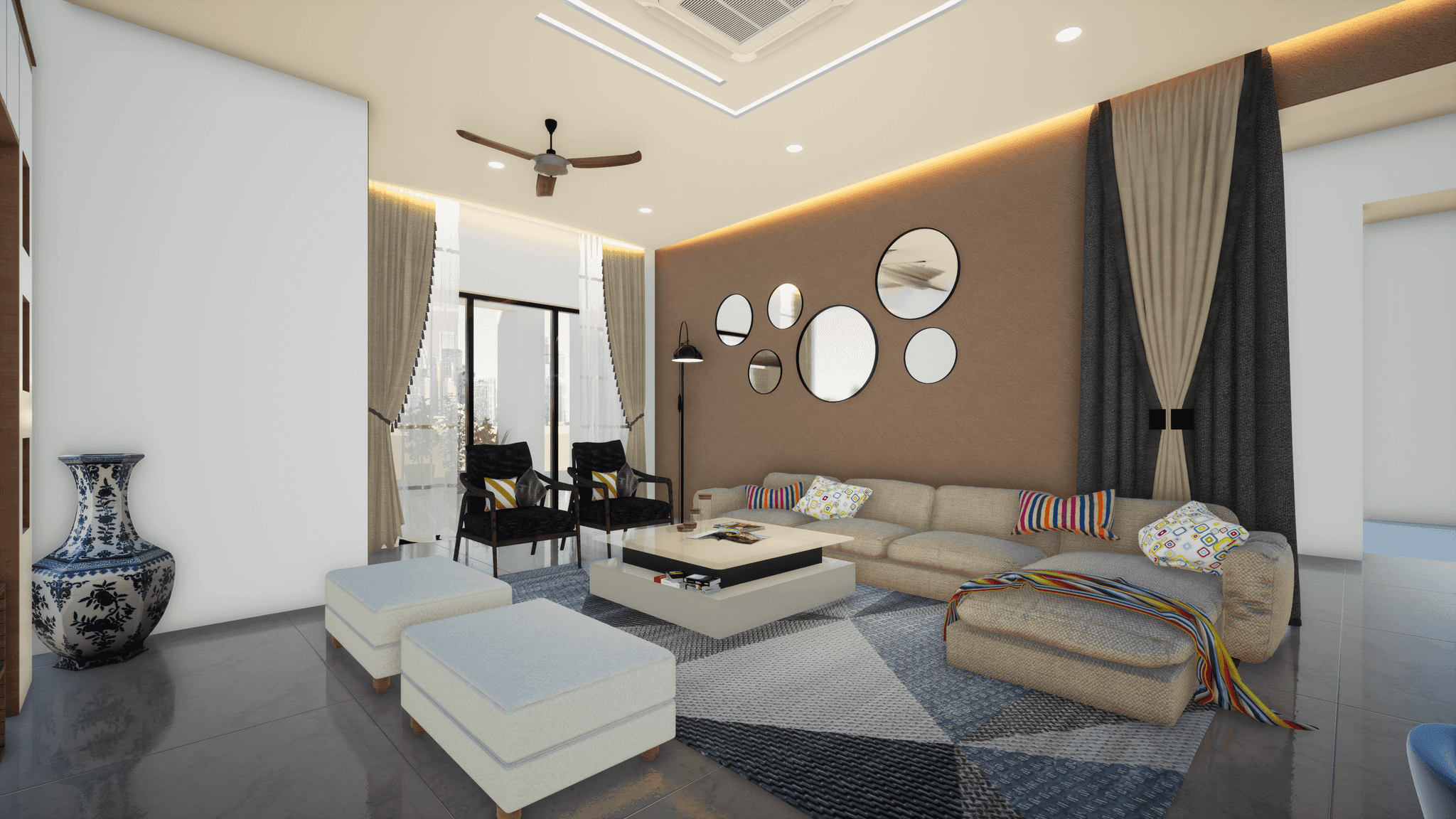 Designed for a family of a couple doctor & their children, this vibrant home features a grand living and dining area, each room uniquely crafted to meet the design preferences of the mother. Located on the third floor, the residence offers seamless city views with a small lake nearby. The main charm of the house lies in its vibrant interior, creating an inviting and joyful atmosphere for the couple to enjoy after spending long days at the hospital.